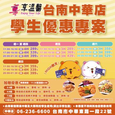 【台南中華店】學生專屬優惠專案