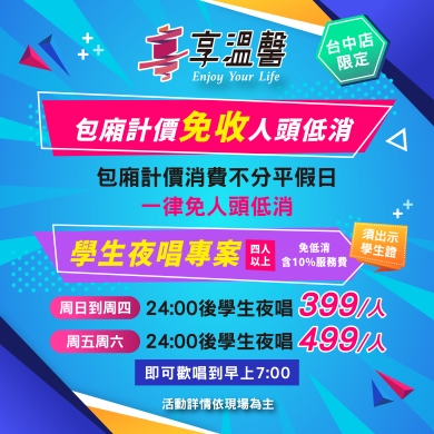 【台中店】包廂免人頭低消、學生夜唱優惠